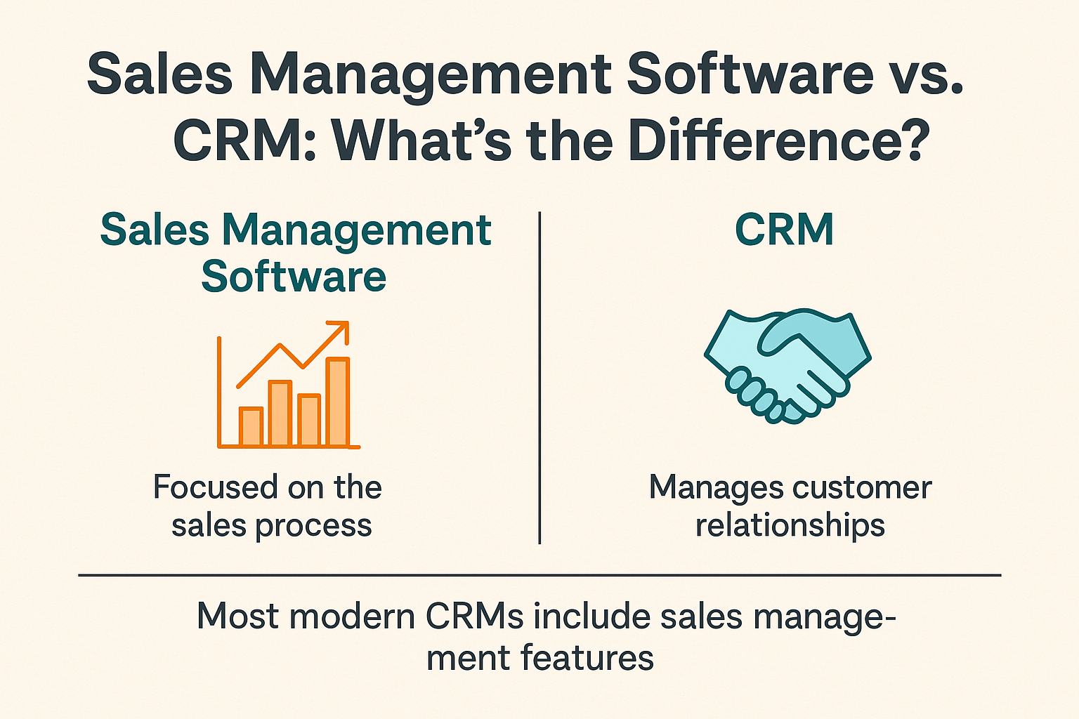 Sales management software, on the other hand, is laser-focused on the sales process, helping leaders track pipelines, coach reps, and forecast revenue.